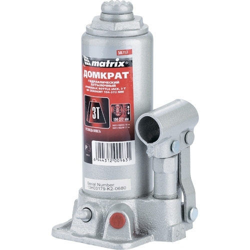 Тип домкрата: БутылочныйГрузоподъемность домкрата: 3000 кг