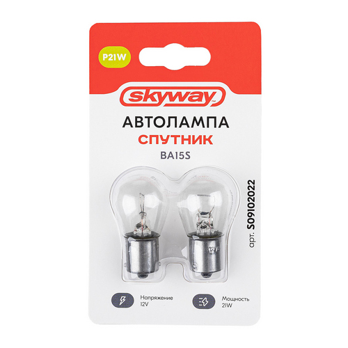 Автолампа P21W 12V 21W с цоколем ВА15s 1-конт 460Лм 2900К СПУТНИК SKYWAY упаковка 2шт