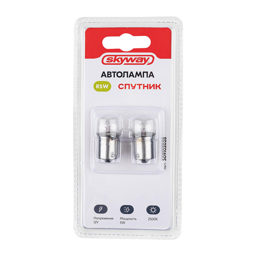 Автолампа R5W 12V 5W с цоколем BA15s 1-конт 50Лм 2400К СПУТНИК SKYWAY упаковка 2шт