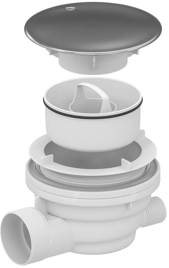 Сифон RGW Velplex QYD-01 со съемным гидрозатвором для душевых поддонов. Верхняя крышка сифона хромированного цвета.Стилистика дизайна: современный