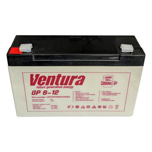 Аккумулятор Ventura GP6-12 обладает низким внутренним сопротивлением, он может использоваться в буферном и циклическом режимах. Благодаря своим характеристикам (12 Ач, 6 В) и продолжительному сроку службы (6 лет) он применяется в ИБП, нефтегазовой отрасли, охранно-охранных системах и телекоммуникациях. Корпус представляет из себя герметичный моноблок, выполненный из ABS-пластика, на крышке которого располагается односторонний клапан избыточного давления, это позволяет использовать Ventura GP 6-12 в горизонтальном и вертикальном положении (установка на крышку не допускается). Сепараторы из стекловолокна (AGM) удерживают жидкий электролит неподвижно.Купить Аккумулятор Ventura GP 6-12 6V 12Ah