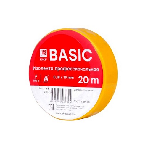 Заказать изоленту 0,18х19мм 20м желтую EKF
