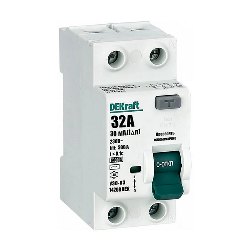 Выключатель дифференциального тока DEKraft 2п 32А 30мА AC УЗО-03 6кА 14208DEK