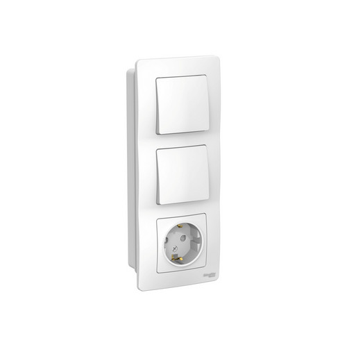 Блок розетка с заземлением и 2 одноклавишный выключателя белый BLANCA BLNBS101101