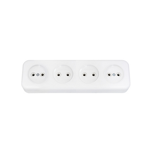 Розетка штепсельная четырехместная открытой установки.Номинальная частота тока: 50 Гц
