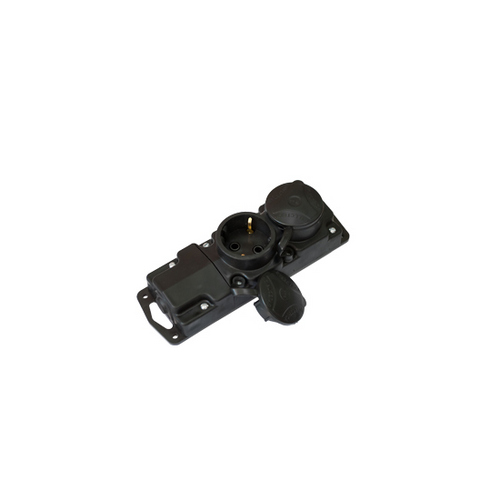 Розетка штепсельная переносная двухместная с заземляющим контактом брызгозащищенная.Материал корпуса: армлен