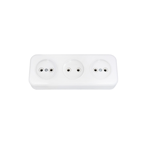 Розетка трехместная открытой установки.Номинальная частота тока: 50 Гц