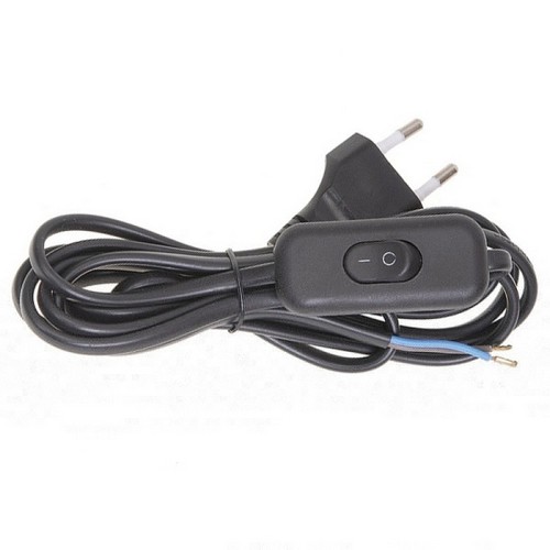 Шнур УШ-1КВ опрессованный с вилкой со встроенным выключателем 2*0,75/2 метра черный ИЭК