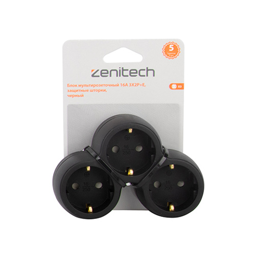 Блок мультирозеточный 16А 3х2Р+Е с защитными шторкамиЛинейка продукции : Zenitech