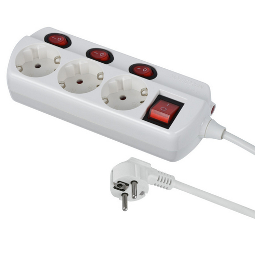 Удлинитель 3Р кабель ПВС 3х1,0мм2 1,5м 16А с выключателем на каждой розетке белый Electraline