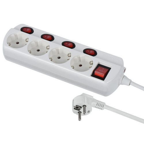 Удлинитель 4Р кабель ПВС 3х1,0мм2 1,5м 16А с выключателем на каждой розетке белый Electraline