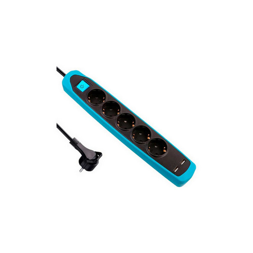 Удлинитель 5Р кабель ПВС 3х1 мм² 2м с двумя USB разъемами черный/голубой 62157