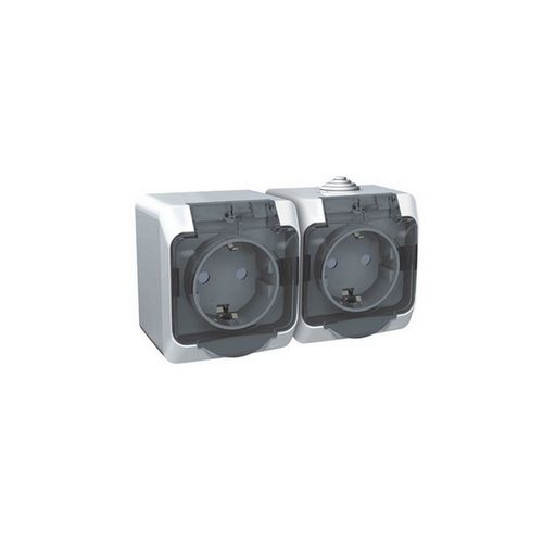 Купить розетка двойная с заземлением со шторками белая IP44 РА16-244BЗаказать розетка двойная с заземлением со шторками белая IP44 РА16-244B