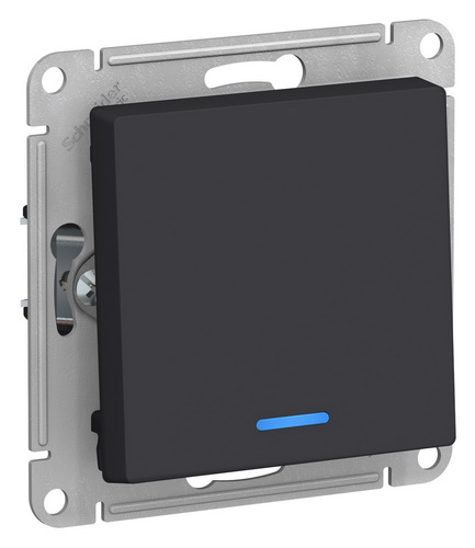 Механизм Schneider Electric AtlasDesign (цвет карбон) выключателя 1-клавишного с подсветкой подходит для сетей 250 В, на ток 10 А. - Благодаря светодиодной подсветке синего цвета изделие легко найти в темноте. - Лицевые детали из качественного ABS-пластика, устойчивого к царапинам и УФ-излучению. - Благодаря покрытию soft touch к изделию приятно прикасаться.Купить Выключатель 1-клавишный с подсветкой КАРБОН ATN001013 ATLASDESIGN(1)