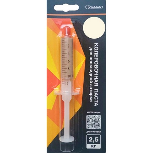 Паста колеровочная Diamant применяется для ручной колеровки эпоксидной затирки Diamant. В качестве базы для колеровки используется Эпоксидная затирка Diamant со значком Diamant Color либо цветовым индикатором Хамелеон.Как правильно заколеровать эпоксидную затирку Diamant с помощью колеровочной пасты в шприцах: