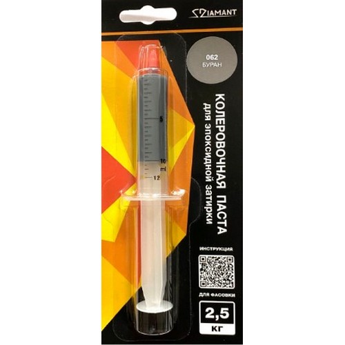 Паста колеровочная Diamant применяется для ручной колеровки эпоксидной затирки Diamant. В качестве базы для колеровки используется Эпоксидная затирка Diamant со значком Diamant Color либо цветовым индикатором Хамелеон.Как правильно заколеровать эпоксидную затирку Diamant с помощью колеровочной пасты в шприцах: