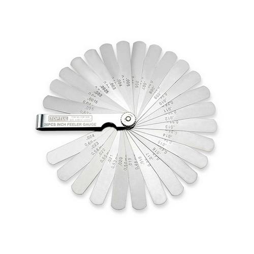 Предназначен для измерения толщины зазоров между деталями.Набор щупов 26 штук дюймовых TOPTUL (ICBA1026) выполнен из закаленной пружинной стали. Щупы имеют двойную маркировку: в дюймовой и метрической шкале. Стальной чехол имеет специальную выемку для удобного извлечения щупа. Чехол оснащен блокиратором для безопасного хранения и транспортировки инструмента.
