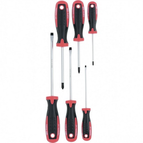 Набор отверток с двухкомпонентными рукоятками, состоит из 6 инструментов. и предназначен для монтажа и демонтажа резьбовых соединений. Отвертки подходят под шлицы PH и SL и имеют намагниченные жала, позволяющие направлять крепеж одной рукой. Набор пригодится во время ремонта бытовой и компьютерной техники или сборки мебели.Купить набор отверток 6шт сталь S2 двухкомпонентные рукоятки MATRIX