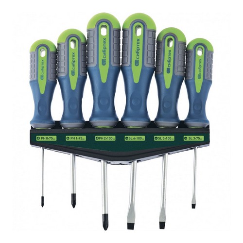 Заказать Набор отверток CrV трехкомпонентные рукоятки 6 предметов Сибртех