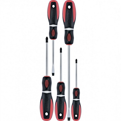 Набор отверток с трехкомпонентными рукоятками, из стали CrV, состоит из 5 инструментов и используется для работы с резьбовыми соединениями. Отвертки подходят для шлицев PH и SL. Благодаря намагниченным наконечникам не нужно придерживать крепеж рукой. Набор рекомендован для профессионального применения и пригодится во время сборки мебели, ремонта бытовой и оргтехники.Купить набор отверток Era 5шт CrV трехкомпонентная рукоятка Matrix