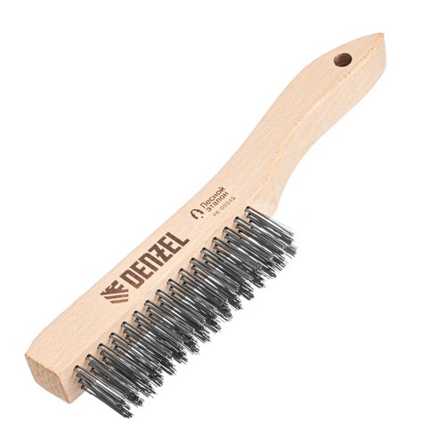 Щетка зачистная 4-х рядная прямая проволока из нержавеющей стали с деревянной ручкой DENZEL