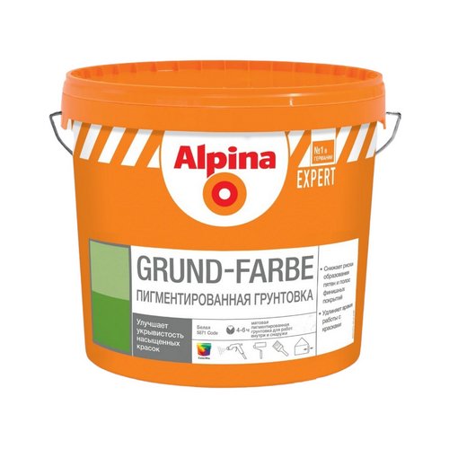 Дисперсионная пигментированная грунтовка Alpina EXPERT Grund-Farbe с водоотталкивающими свойствами для паропроницаемых, укрывистых покрытий, снижающих контрастность оснований и повышающих кроющую способность финишных лакокрасочных покрытий. Удлиняет время работы с красками и прочими финишными декоративными покрытиями на водно-дисперсионной основе, упрощает их нанесение. Выравнивает и снижает водопоглощение обрабатываемых оснований: обеспечивает благоприятные условия для высыхания финишных покрытий без образования пятен и полос. Для наружних и внутренних работ. Расход 140-160 гр/м2. Цвет белый.Купить грунтовку Alpina EXPERT Grund-Farbe 10л /15,5 кг