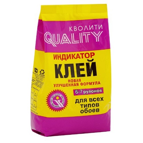 Клей предназначен для всех типов обоев и для предварительной обработки стен.Клей Кволити Индикатор изготовлен на основе модифицированного крахмала. В нем содержатся специальные красящие добавки, придающие составу розовый цвет. Такой ''индикатор'' позволяет полностью промазать поверхность обоев, не оставляя пустых участков.
