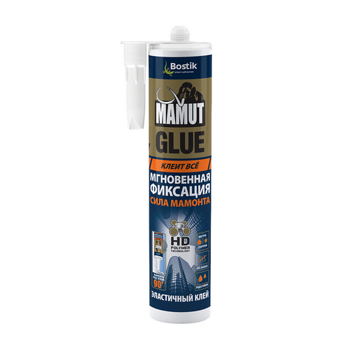 MAMUT GLUE специально разработан, как универсальный монтажный клей с экстремально высокой начальной силой фиксации. Применяется для клеевого монтажа различных элементов конструкций и надежного соединения разнообразных строительных материалов, таких как: камень, бетон, зеркала, стекло, гипсокартон, полиуретан, ПВХ, твердые пластики, эмалированные поверхности, керамика, медь, свинец, цинк, олово, алюминий и др. металлы (в том числе сплавы), нержавеющая сталь, дерево и т.д . Не подходит для ПЭ, ПП, ПК, ПММА, ПТФЭ, мягкого пластика, неопрена и битумных оснований. Не подходит для продолжительного воздействия воды. Не применять в сочетании с хлоридами (в ассейнах). Время пленкообразования 10 минут. Скорость высыхания 2 3 мм/сутки. Температура эксплуатации от 40 С до + 90 СТемпература при нанесении от + 5 С до + 40 С. Цвет белый.