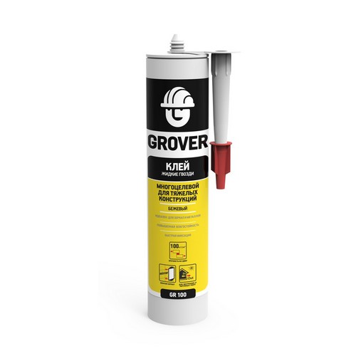 Купить клей монтажный многоцелевой для тяжелых конструкций Grover GR100 бежевый 300мл