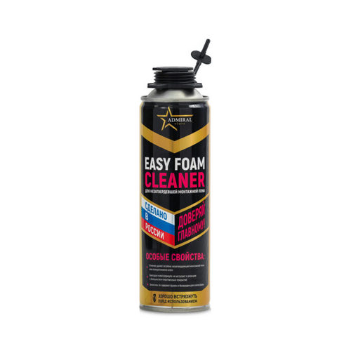 Очиститель монтажной пены предназначен для эффективной очистки пистолетов применяемых для нанесения профессиональных монтажных пен, для удаления пятен незатвердевшей полиуретановой монтажной пены с рабочих поверхностей.Купить очиститель монтажной пены ADMIRAL 350г 500мл