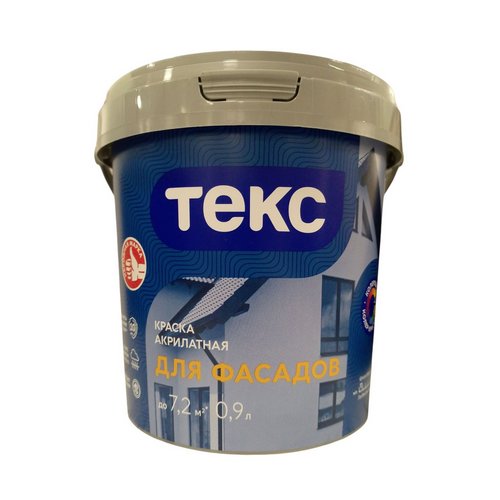 Краска акрилатная Для Фасадов база А белая 0,9л ТЕКС