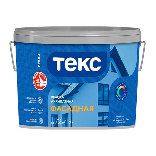 Краска акрилатная Для Фасадов база D прозрачная 9л ТЕКС