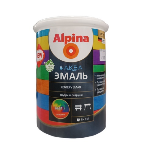 Эмаль акриловая водно-дисперсионная Alpina База 1 глянцевая 0,9л/1,1кг