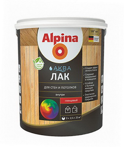 Акриловый лак для деревянных поверхностей, обладает отличными защитными свойствами, легко очищается. Подходит для декоративной отделки и защиты деревянных поверхностей, эксплуатируемых внутри помещения. За исключением полов и поверхностей, подвергающихся сильной механической нагрузке. Для паркета и деревянных полов следует использовать лак Alpina Аква Лак для паркета и полов. Для здорового климата в помещении.Свойства продукта