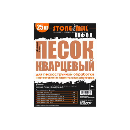 Песок кварцевый для пескоструйной обработки фракция 0,8 25кг