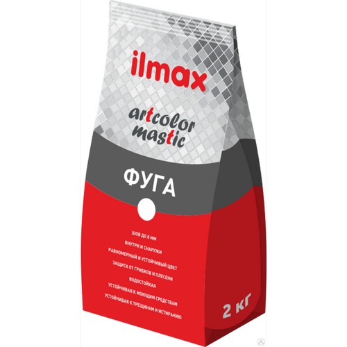 ILMAX ARTCOLOR MASTIC эластичная, водостойкая, устойчивая к плесени (грибку) и лучам ультрафиолета фуга на основе белого цемента и высококачественных пигментов. Комплекс модифицирующих добавок и мелкодисперсный наполнитель позволяют сформировать идеально гладкий равномерный шов. Устойчивость к истиранию и моющим средствам ilmax artcolor mastic обеспечивает долгосрочную эксплуатацию и позволяет сохранять эстетичный вид шва.Используется по деформирующимся и недеформирующимся основаниям.