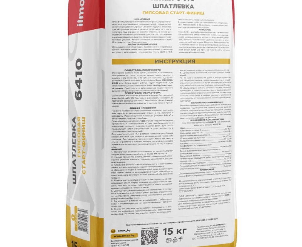 Заказать шпатлевку гипсовую Ilmax 6410 старт финиш 15 кг