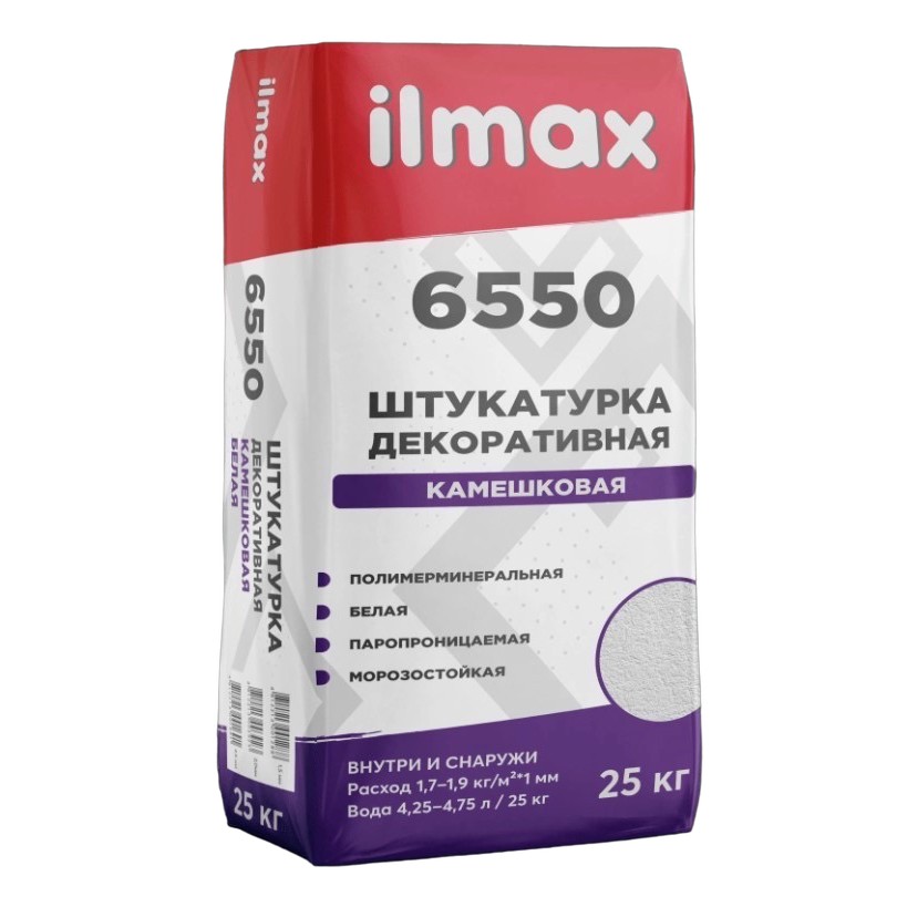 Декоративная штукатурка ilmax 6550 применяется для наружных и внутренних отделочных работ по минеральным поверхностям.Применяется для наружных и внутренних отделочных работ по минеральным поверхностям. Предназначена для создания декоративных тонкослойных штукатурных покрытий с рельефной фактурой ''камешковая''. Используется в качестве элемента декоративно-защитного слоя в легких штукатурных системах утепления.