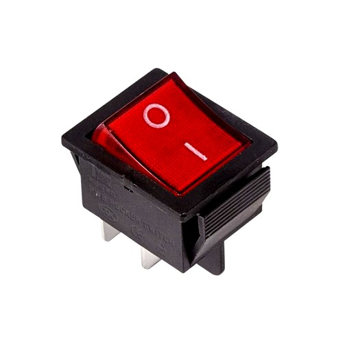 Выключатель клавишный 250V 16А (4с) ON-OFF красный с подсветкой предназначен для коммутации электрических цепей переменного тока напряжением до 250В. Клавишные (Рокерные) выключатели применяются в качестве комплектующих изделий различного электрооборудования (в сетевых фильтрах и удлинителях, аудио-оборудовании, блоках питания, электроустановках на различных производствах и многих других местах). Такой клавишный переключатель имеет два положения. Принцип действия основан на перемещении клавиши в одну из позиций. Для переключения в нужное положение требуется приложить некоторые усилия на клавишу. Монтаж осуществляется без применения винтов на плоских панелях толщиной от 0.8мм до 3мм. Подключение контактов осуществляется плоской клеммой 6.6мм либо с помощью пайки.Номинальное напряжение: 250В