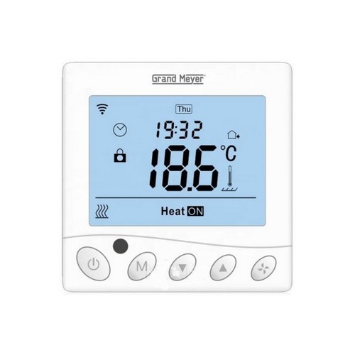 Программируемый терморегулятор с функцией удаленного доступа Wi-Fi для управления отоплением электрического типа. Возможность программируемого, а также ручного управления. Возможность установки недельного периода 5+2/6+1/7 дней. Максимальная нагрузка 3600 W. Установка в стандартную монтажную коробку. Память настроек при отключении питания. Огнезащитный пластик. NTC датчик. Диапазон установки: от +5C до +35C (заводские).Рабочее напряжение 220-240 В~ 50/60 Гц.