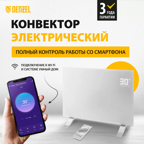 Конвектор электрический OptiPrime-1500 Wi-Fi тачскрин цифровой термостат 1500 Вт Denzel,