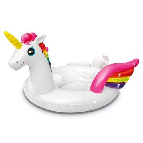 Невероятно яркий и необычный бассейн в виде волшебного единорога непременно по достоинству оценит ваше ребенок и его друзья. На хвосте у единорога имеется распылитель, который при подключении к нему садового шланга будет создавать освещающий фонтанчик воды. Небольшие глубина и объем, а также широкие бортики делают этот бассейн очень комфортными и безопасными для купания малышей. Если вы хотите, чтобы ребенок не перегревался под солнцем, рекомендуем приобрести садовый зонт для установки над площадью бассейна.Форма: круглая