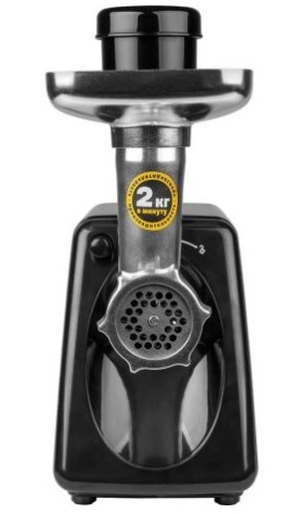 Электрическая мясорубка с функцией реверса и удобной быстросъемной горловиной и металлическим загрузочным лотком.Для хранения мелких деталей предусмотрен специальный отсек в корпусе толкателя.