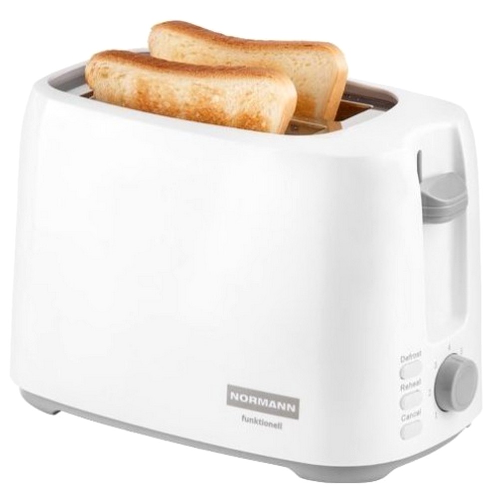 Функциональный тостер на 2 ломтика хлеба NORMANN Funktionell обладает всеми самыми необходимыми функциями для поджарки румяных тостов, такими как регулировка степени обжарки, подогрева и разморозки, функции досрочной отмены приготовления. Автоматическая центровка тостов позволяет равномерно прожарить тост любой толщины.Преимущества: