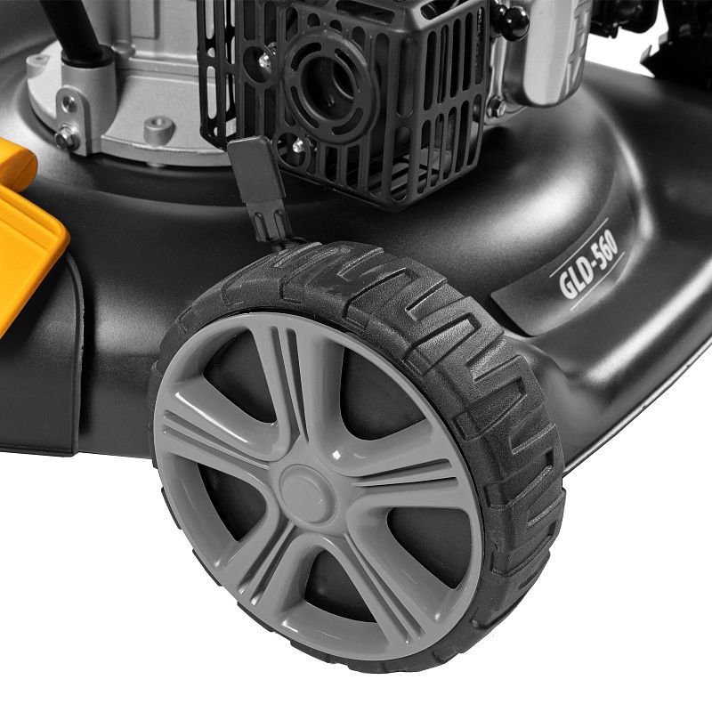 Бензиновая косилка Denzel GLD-560 сочетает в себе мощность 6,5 л. с. и повышенную ширину скашивания - целых 56 см за один проход. Благодаря этому за 1 час возможно обработать до 2000 кв.м. На одной заправке машина способна проработать до 60 минут.Высота покоса травы варьируется в диапазоне 30-80 см за счет индивидуальной регулировки колес. Вы сможете создать несколько типов газона на своем участке: парадный, спортивный, садово-парковый и т.д. Всего доступно 5 уровней настройки высоты подрезания.