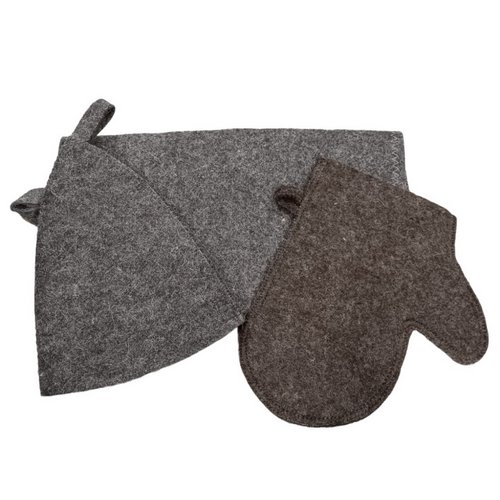 Заказать набор из трёх предметов- шапка, коврик, рукавица серый Hot Pot 41345