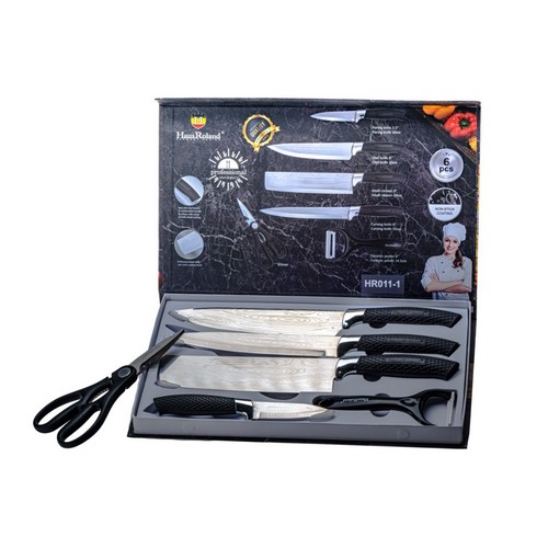Набор ножей металлических 6 пр. : 4 ножа, ножницы, скребок HR011-1