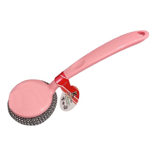 Металлическая губка для мытья посуды с ручкой как нельзя лучше подходит для очистки кастрюль, сковород, противней, гриля и многих других предметов. Изделие состоит из ручки из пластика и чистящей абразивной части, которую можно менять. Преимущества: высокоэффективна, износоустойчива, долговечна снижает усилия при мытье сильно загрязнённых поверхностей позволяет легко удалить подгоревшие продукты, жир и стойкий нагар подходит для большей части посуды не деформируется при интенсивном и длительном использовании благодаря круглой форме предмет можно применять в труднодоступных местах. Металлическая губка с ручкой станет незаменимым помощником на любой кухне.Цвет в ассортименте.