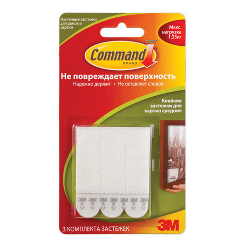 Каждый комплект клейких застежек выдерживает нагрузку до 1,35 кг.Упаковка содержит 3 комплекта застежек (6 полосок) Command. Легко снимаются, не повреждая стен.