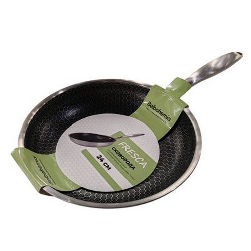Антипригарное покрытие с дизайном в виде медовых сот.Купить сковороду 24 см из нержавеющей стали с антипригарным покрытием ''Onyx'' ВВ102111